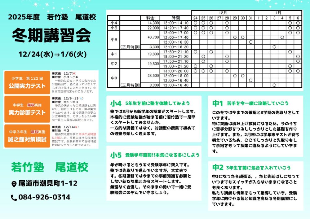 尾道 冬期講習リーフ