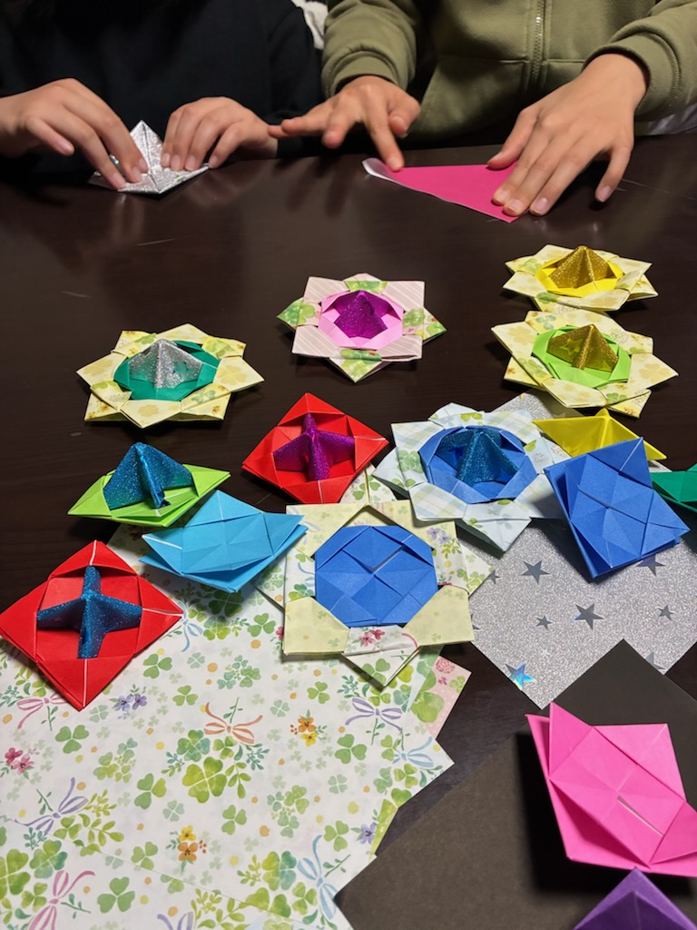 それは、家族みんなで折り紙の“コマ”を作ることです。